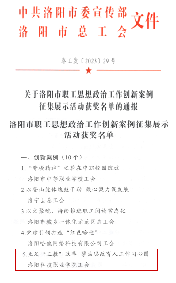 近日,中共洛阳市委宣传部洛阳市总工会发布了洛阳市职工思想政治工作创新案例征集展示活动获奖名单,对遴选出的10个优秀案例予以通报表扬和奖励。英皇娱乐场