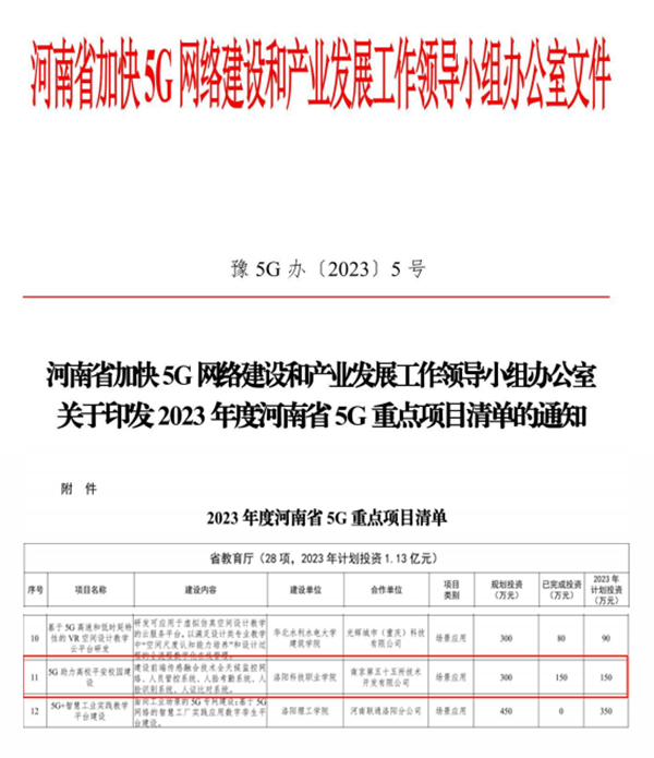 近日,河南省加快5G网络建设和产业发展工作领导小组办公室公布了《关于印发2023年度河南省5G重点项目清单的通知》,洛阳科技职业英皇娱乐场