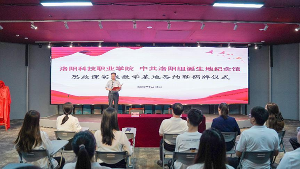 院长刘琳娜、办公室主任李得福及思政课教师代表,与中共洛阳组诞生地纪念馆馆长王丹及馆内工作人员参加仪式。仪式由副校长韩全力主持。