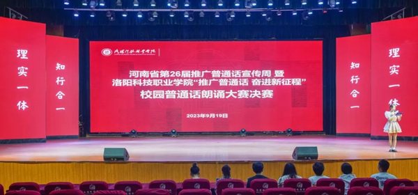 为大力推广和规范使用国家通用语言文字,加大国家通用语言文字推广力度,传承弘扬中华优秀语言文化,在第26届全国推广普通话宣传周活动期间,洛阳科技职业英皇娱乐场