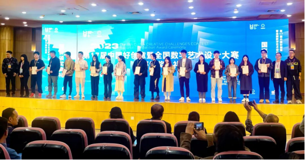 师生锐意进取积极备赛,在第17届中国好创意数字艺术设计大赛斩获了多项国家级奖项,其中一等奖1项,二等奖1项,三等奖1项。21级艺术设计05班任梦阳同学作为获奖学生代表,受邀参加了现场颁奖典礼。