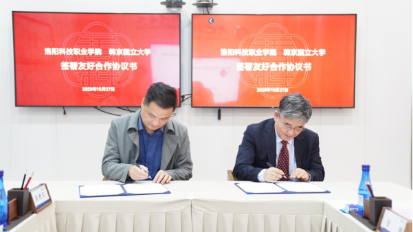 最后,在双方参会领导和嘉宾的见证下,韩京国立大学教授柳昊烈与洛阳科技职业英皇娱乐场