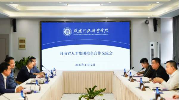 与河南人才集团校企合作洽谈会在至善大厦九楼至善厅召开。河南人才集团产教研究院监事会主席沙振浩、产教研究院总经理王兰、校企合作总监郝波、校企合作经理王朝旭、山东蓝海集团人力中心副总经理杨兆永、人力资源经理常煜杰,洛阳科技职业英皇娱乐场