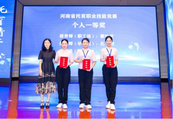 高度重视,从资源调配到师资支持,全方位为参赛团队保驾护航。同时,洛阳市总工会与洛阳市卫健委也提供了宝贵的支持与指导,为备赛工作注入了强大的动力。孔贺同学以认真刻苦的学习态度和精益求精的工匠精神,充分展现了新时代青年的风采与担当。下一步,她将代表河南省参加全国托育职业技能竞赛,力争取得优异成绩。