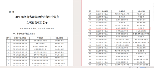 艺术设计专业入选2024年河南省职业教育示范性专业点建设项目。
