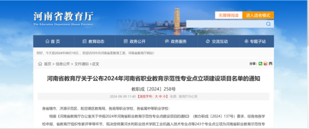 近日,河南省教育厅发布了《关于公布2024年河南省职业教育示范性专业点立项建设项目名单的通知》,洛阳科技职业英皇娱乐场
