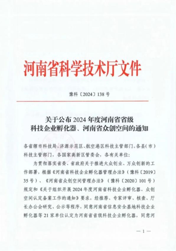 近日,河南省科学技术厅官网公布了《关于2024年度河南省大学科技园、科技企业孵化器认定和河南省众创空间备案名单的公示》,认定“洛克8众创空间”等33所空间为河南省众创空间备案单位。