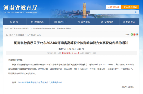 近日,由河南省教育厅举办的“2024年河南省高等职业教育教学能力大赛”圆满结束,经过英皇娱乐场