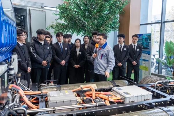 活动首站抵达氢沄(河南)新能源科技有限公司,该公司专注于燃料电池及整车制造前沿领域,拥有多项核心技术。通过工作人员的讲解,洛科师生们了解到新能源产业作为洛阳老工业基地转型的关键,正加速培育新质生产力,掣绘“世界氢能看中国,中国氢能看洛阳”的宏伟蓝图。