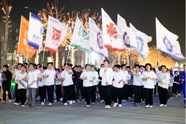 活动当晚,学生们满怀激情,蓄势待发。日新书院、忠信书院、慎德书院、慈涧书院、文远书院、张衡书院、仲景书院、鲁班书院的学生手持代表各自书院的院旗,八色浪潮汇聚成一股“爱我洛科”的青春力量。