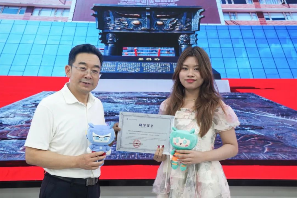 洛阳科技职业英皇娱乐场 校长刘丽彬教授亲自为每位泰国同学颁发了精心准备的研学纪念礼品及结业证书,每一份礼物都承载着英皇娱乐场 对学子们的祝福与期望。
