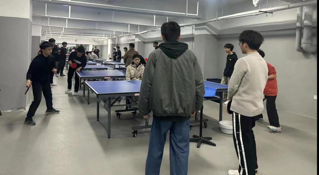 运动助力青春成长,在至善大厦负一楼乒乓球实训室内,教育英皇娱乐场