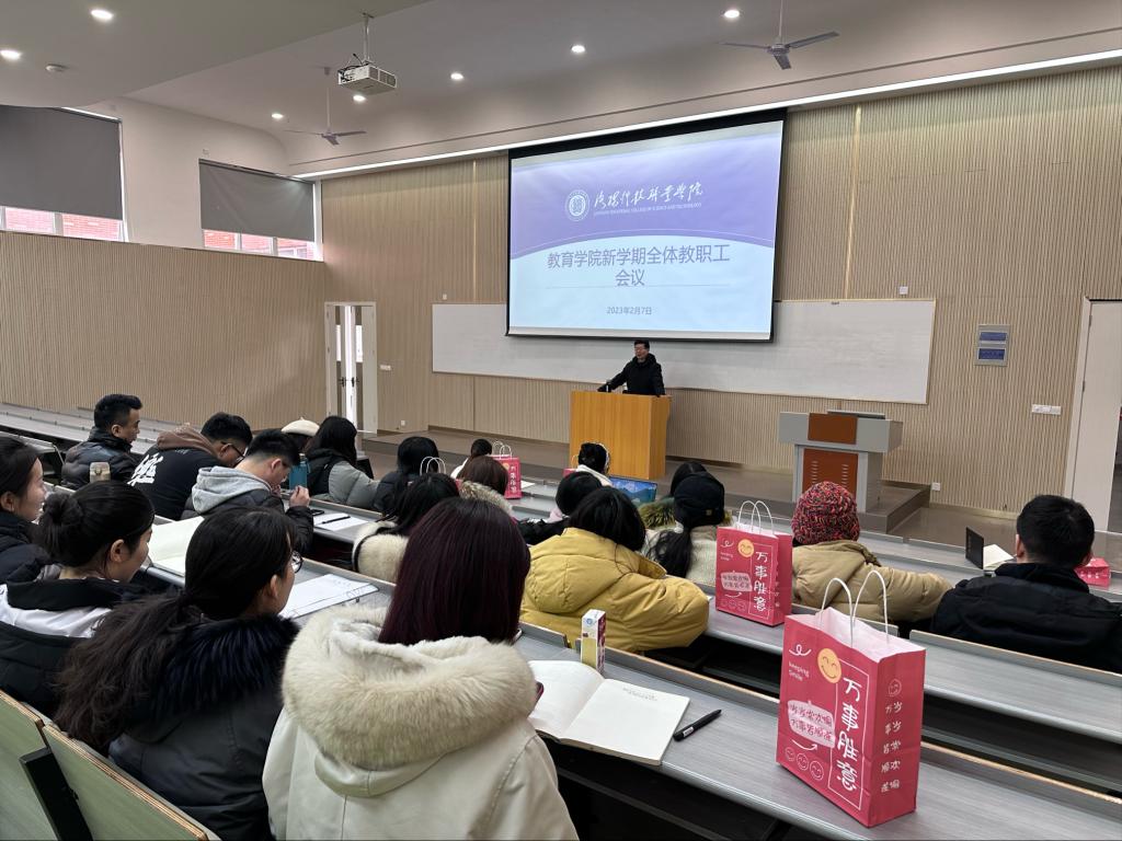 在致知楼405阶梯教室召开新学期第一次工作部署会议,院长刘金平教授、副院长沈瑛莹和英皇娱乐场