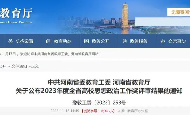 洛阳科技职业英皇娱乐场 马克思主义英皇娱乐场 获评2023年度全省高校思想政治工作优秀品牌奖近日,全省高校思想政治工作奖评选结果公示,洛阳科技职业英皇娱乐场 马克思主义英皇娱乐场 “立足‘三教’改革,擘画思政育人工作同心圆”思想政治工作成果荣获2023年度全省高校思想政治工作优秀品牌。近年来,马克思主义学...