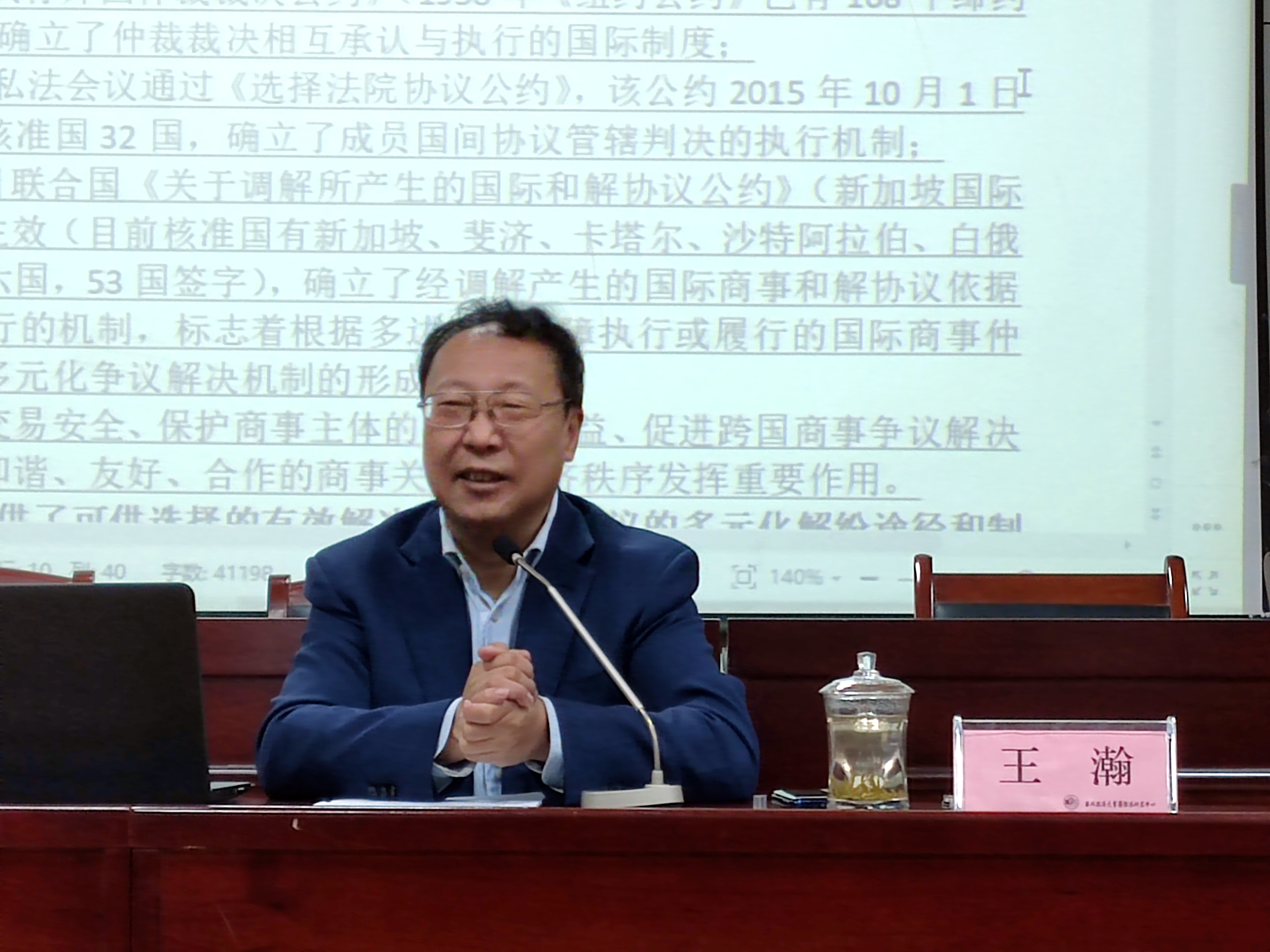 “丝绸之路”区域合作与发展法律研究院院长、博士生导师王瀚教授担任主讲人,国际法研究中心研究员张望平副教授担任主持人,国际法研究中心孙尚鸿教授、时杜娟博士、陈婉淑博士作为与谈人,英皇娱乐场