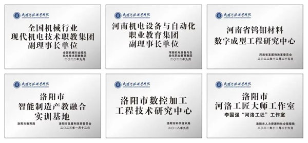 是教育部中德先进职业教育(SGAVE)合作项目首批试点院校、全国机械行业现代机电技术职教集团副理事长单位、河南机电设备与自动化职业教育集团副理事长单位、河南省新能源汽车产教融合专业联盟理事单位、洛阳市新能源汽车产业联盟会员单位,拥有河南省钨钼材料数字成型工程研究中心、洛阳市智能制造产教融合实训基地、洛阳市数控加工工程技术研究中心、洛阳市河洛工匠大师工作室、洛阳市技能实训基地。