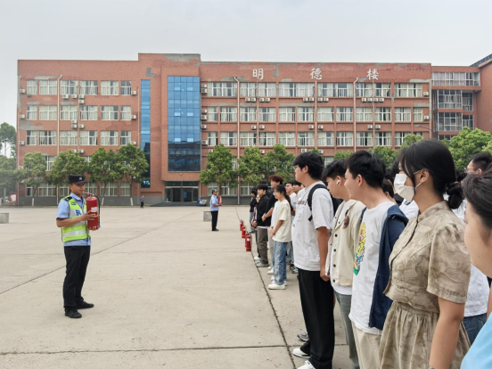 在全体师生安全撤离至至善大厦西侧小广场集合后,保卫处人员为大家进行了灭火器使用的现场演示。他们详细讲解了灭火器的操作步骤和注意事项,包括如何提起灭火器、拔掉保险销、握住喷管以及按压把手进行灭火等关键环节。为了让师生们更好地掌握操作技巧,保卫处人员还邀请了部分学生和教师上台进行实践操作。在专业人员的耐心指导下,大家亲自体验了使用灭火器灭火的过程,切实感受到了正确操作灭火器在火灾初期扑救中的重要性。