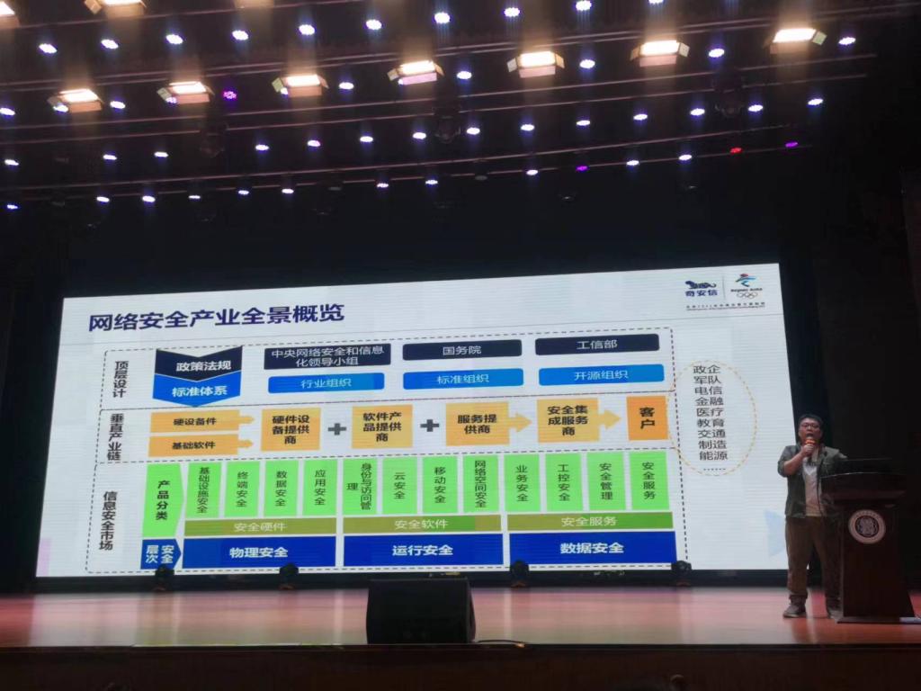 奇安信河南分区技术总监奇安信高级认证工程师夏正朴,主要从网络安全行业概述及就业方向给同学们进行了介绍。同学们通过了解学习,能够正确认识网络安全行业以及国内网络安全的就业形势,进一步明确个人发展方向,并为同学们种下希望的种子。