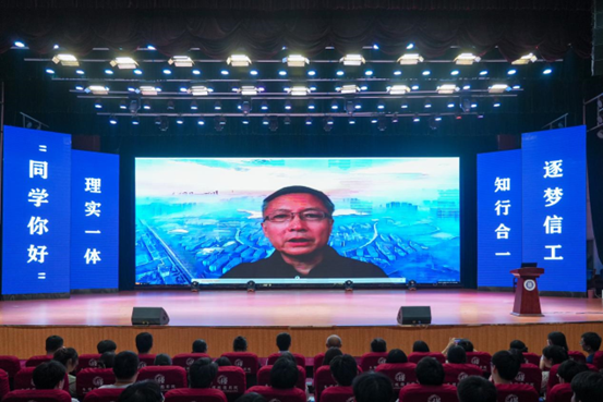 开学典礼,活动开场宋启祥教授带领全院师生共同练习歌唱校歌<匠心追梦>,提高了新生的归属及认同感。