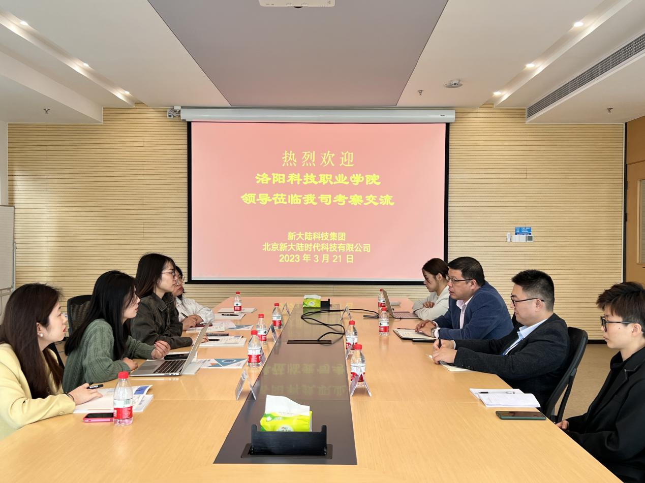 为解决物联网应用技术专业在人才培养、职业技能竞赛、学生就业、三大板块存在问题,贯彻落实用人需求大调研活动促进学生高质量就业与可持续发展。3月20日,洛阳科技职业英皇娱乐场 信息与数字工程英皇娱乐场 调研团队赴新大陆时代科技有限公司开展岗位用人需求大调研活动。以“挖掘岗位需求新大陆,构建人才数字产业链”为主题,展开交流、参观。新大陆产教融合部陈林波经理、创新教育研究院林含君讲师、产教融合部蔡灵、杨晓梅以及信息与数字工程英皇娱乐场 骨干教师参与此次调研活动。