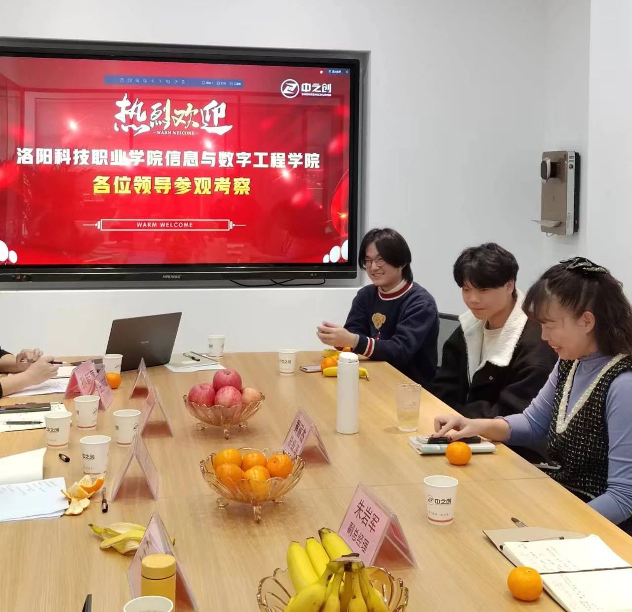 在走访过程中,中之创总经理朱岩军介绍了公司软硬件环境、未来发展目标、场地规划以及实训教室等,大家对企业概况和发展目标有了更加全面的了解,也对实习生的办公环境有了全方位的了解。朱岩军表示,专业技能是基础,是学生入职企业的重要参考依据,但同时企业对学生的学习能力、沟通交流能力以及个人品德等职业素质也非常看重。针对毕业生而言,个人主观能动性、项目实践水平仍需要进一步提升,建议在教学过程中加强项目实践练习,同时帮助学生建立完善的认知体系,帮助毕业生完成学生到职场人的顺利转变。