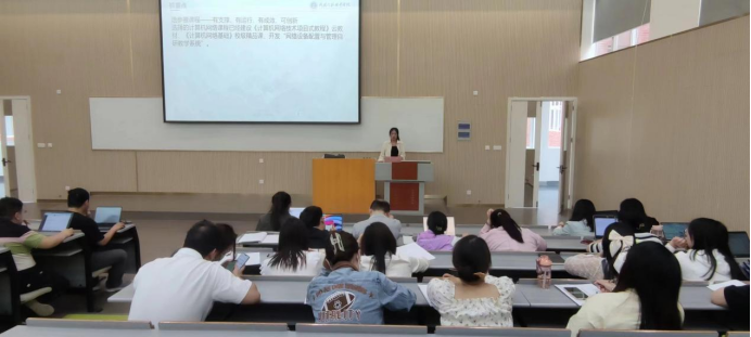 王洋利教师:从“研文件—抓重点—有创新”三个方面分享参赛经验。教学类竞赛要仔细研读竞赛文件,挖掘隐藏要求,避免出现低级错误。要选择有支撑、有运行、有成效、可创新的课程参赛;选择易讲解、易理解、可思政、可创新的章节;教学环节层层环扣,缺一不可,教学反思要体现;无声课堂展示环节严格把控时间且教学环节展示完整;团队成员的默契尤为重要。教学的过程要有创新点、亮点才能够抓住评委眼球。