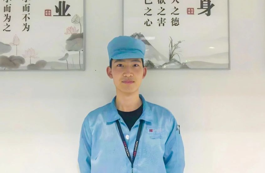 谷兴豪,信息与数字工程英皇娱乐场 计算机应用技术专业25届毕业生。现就职于杭州海康威视电子有限公司,任储备线长。屏幕前,代码与数据交错飞舞产线上,精密仪器无声运转,这里是海康威视的数字化车间,23岁的谷兴豪正紧盯系统界面指尖飞速敲击键盘...