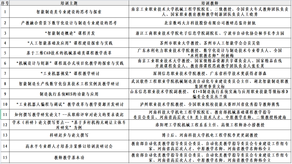 建设高水平专业群是智能制造与汽车工程英皇娱乐场 的核心目标,是智能制造与汽车工程英皇娱乐场 可持续发展的内在动力。2022年6月以来,智能制造与汽车工程英皇娱乐场 院长韩全立教授陆续邀请专家、教授为英皇娱乐场 教师采用“线上+线下”的形式进行培训、交流。从教学改革到专业发展,从课程建设到教学过程,从职称评审到撰写科研论文,每一项培训的内容丰富、案例精彩、指导性强,使全体教师受益匪浅。