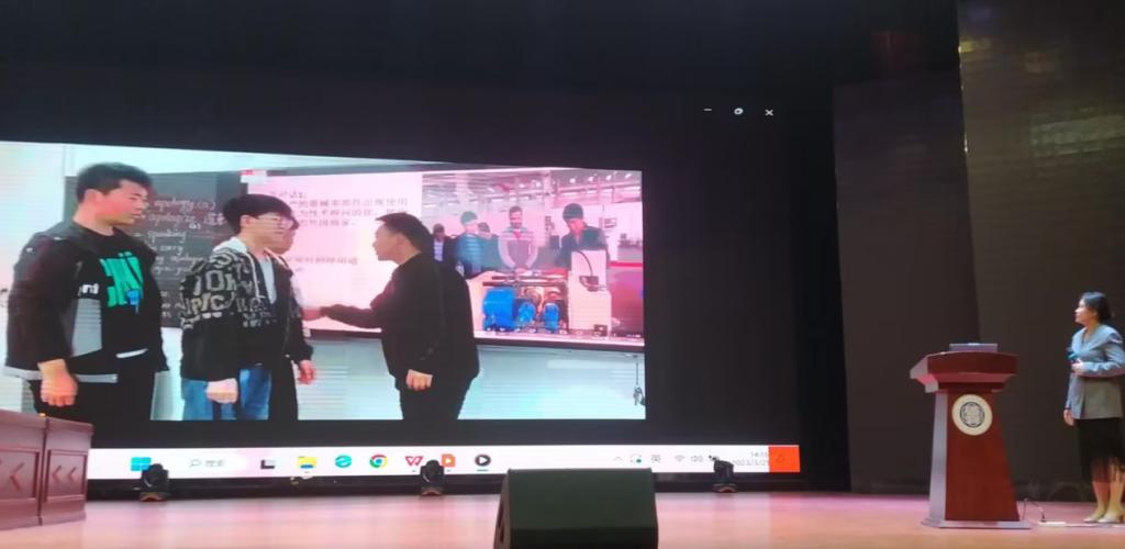不同专业的学生一起,多层次、全方位地展示了马院在“三教改革”道路上的阶段性成果。而后由袁进展老师结合马院“三教改革”成果,与学生一起在会上向老师们展示了一堂丰富有趣且引人深思的思政课。