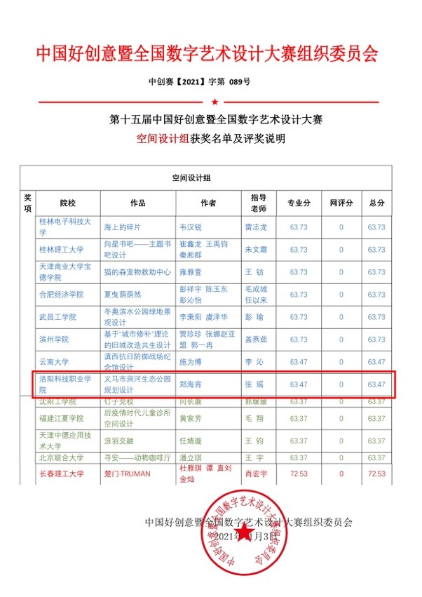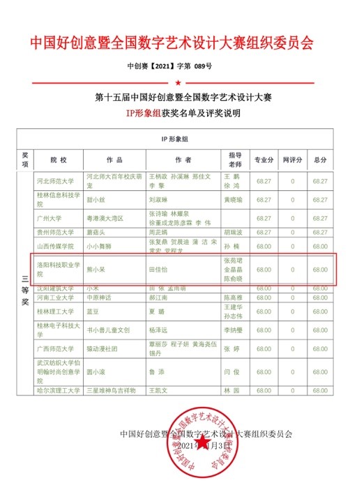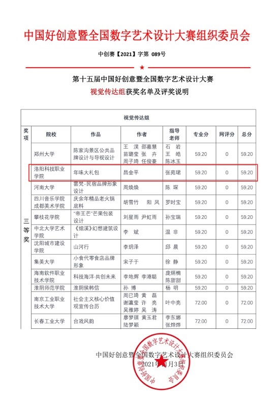 近日,中国好创意暨全国数字艺术设计大赛组织委员会公布第十五届中国好创意暨全国数字艺术设计大赛获奖名单,洛阳科技职业英皇娱乐场