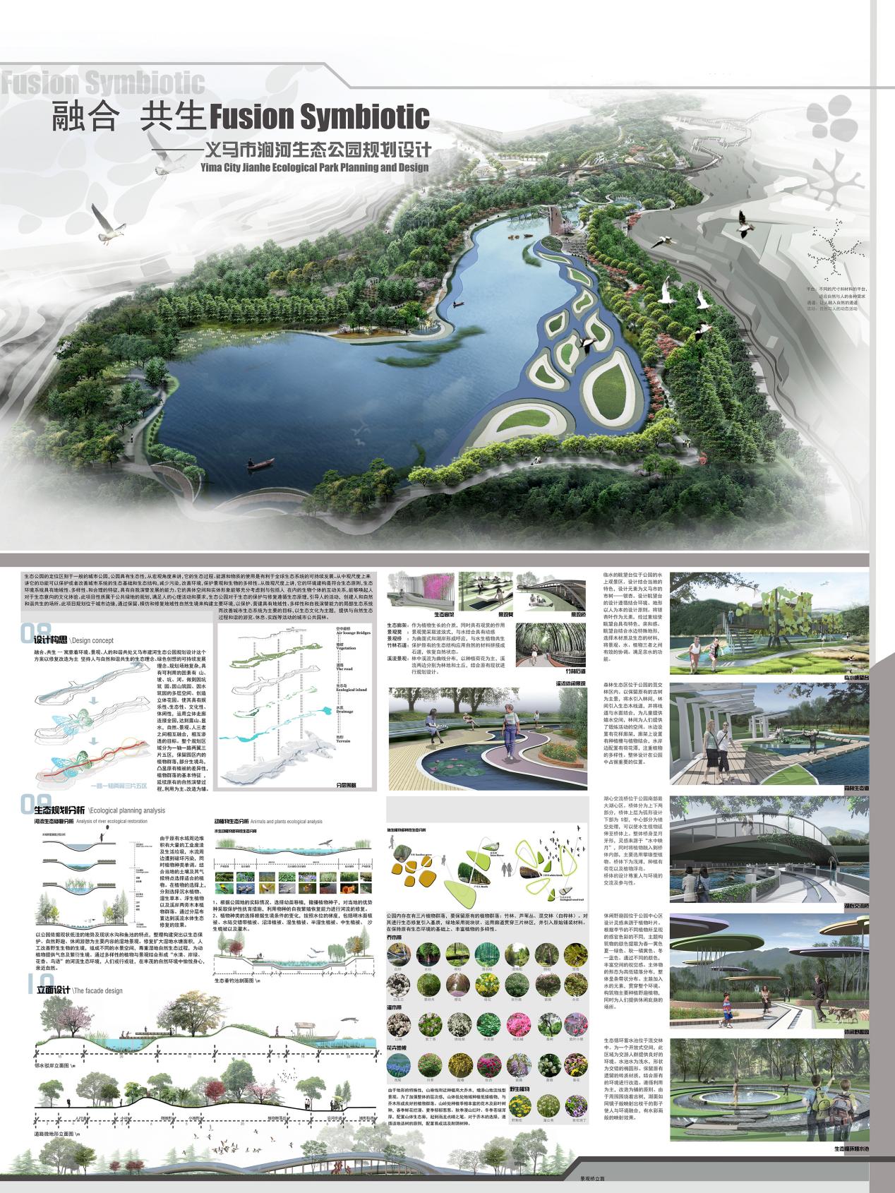 设计说明:共生融合是指两种相互利用的生态关系,彼此间有直接营养物的交流,相互依赖,相互依存,双方获利共生,本方案通过营造多空间,建立雨水调节系统及动植物保护景观来缓解人与人的紧张交往关系,洪涝污染等问题,形成人与自然,人与景观,人与人的和谐共生与融合。当我们想到家乡的时候,首先出现在脑海里的是家乡的容貌,想到家乡的一草一木,在一个环境中,环境有生气了,城市就有生气,环境沉闷荒废了,城市也就沉闷了,义马市位于河南省西部,是一座煤炭城市,自古以来是兵家必争之地,有武术之乡,远古银杏故乡的美称位于市区东部,有一片占地700亩的林地,由于受到周边工业的影响,和破坏失去了自然原有的色彩,一个具有良好植物群落的谷地,他不应该因为时过境迁而逐步被人们淡忘荒废,应该以一种新的面貌恢复原有的活力,把好的环境,生态和健康留给每一代人,公园生态空间不应该只有植物的群落存在,它不仅承载着好的环境还应该贯穿文化,将植物景观文化融合给市民多元化的体验,生态空间具有恢复自然,丰富自然,满足人们的活动的可能性。