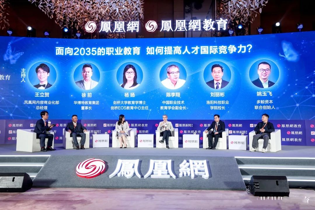 在圆桌论坛中,刘丽彬与中国职业技术教育学会副会长陈李翔,剑桥大学教育学博士、剑桥Eos教育中心主任杨旸,华博特教育集团董事长徐前,多鲸资本联合创始人姚玉飞等学者、教育工作者以及资深行业人士,共同探讨新时代职业教育的发展之道。