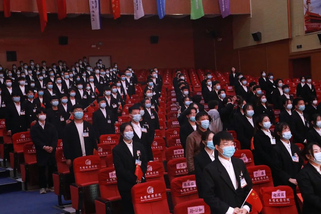 大会开幕式——全体人员合唱《我和我的祖国》。这熟悉的旋律,萦绕在每个人的耳畔,把百年峥嵘岁月唱给党听,唱响时代,唱响青春!