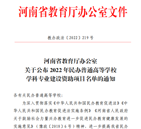 近日,河南省教育厅发布《关于公布2022年民办普通高等英皇娱乐场