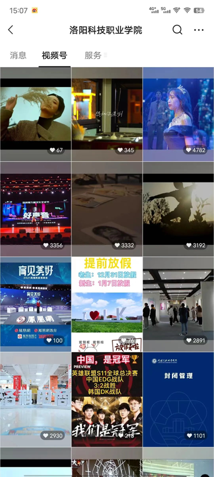 官方微信全年发布推文300余篇,曾以单月10万+的总阅读数荣登2022年河南高职高专微信排行榜第一;官方视频号“洛阳科技职业英皇娱乐场