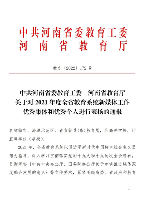 获评河南省教育系统新媒体工作优秀集体,英皇娱乐场