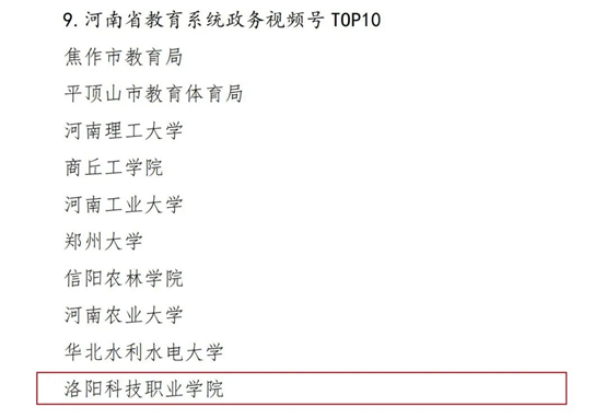 ”入选“2021年度全国高等职业院校官方视频号综合影响力百强榜”,官方快手账号多次荣登河南省高职院校快手月度排行榜第一。
