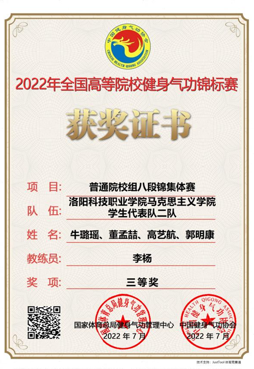 两支学生参赛队伍均获得了集体八段锦三等奖。