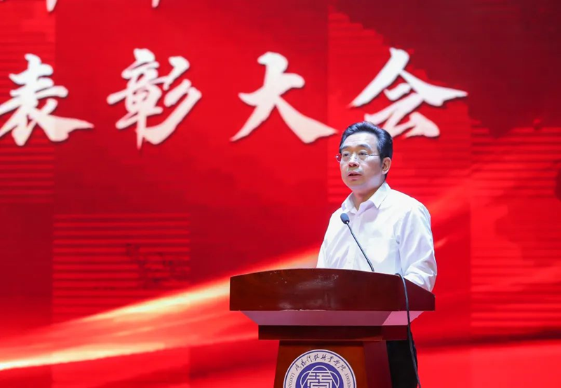 发展作出积极贡献的优秀教师和教育工作者以及他们在勇担时代使命中的突出表现。校领导及全体教职工出席会议。