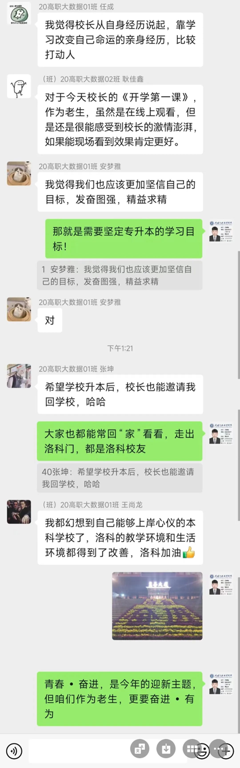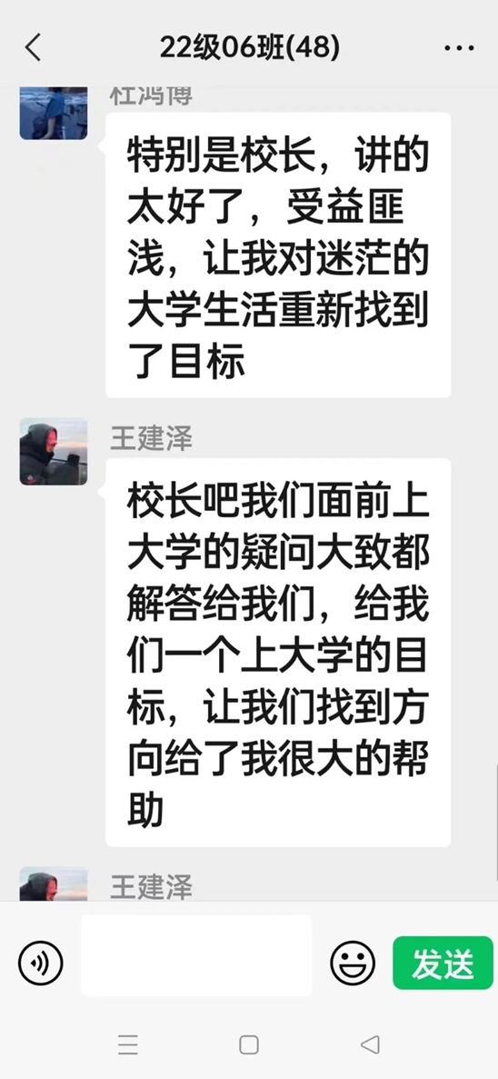 与此同时,刘丽彬与新生们进行了“零距离”交流互动,解答了新生们关于专升本、如何规划未来、社团活动及时间管理等方面的困惑,引导大家做“难而正确,但能实现人生价值的事”,用实际行动成就人生理想。