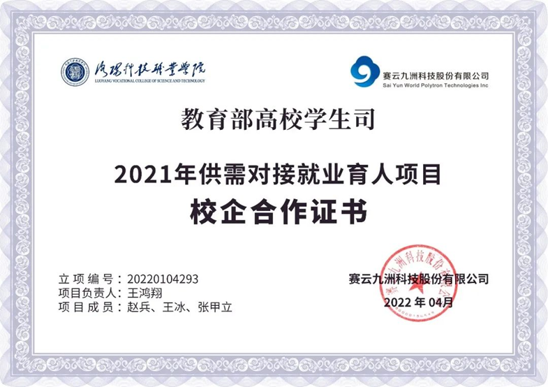 从定向人才培养培训等方面与赛云九洲科技股份有限公司进行合作,共同打造专创融合、思创融合、就创融合、赛创融合的协同育人体系,以创促就,提升毕业生就业能力和综合素养。
