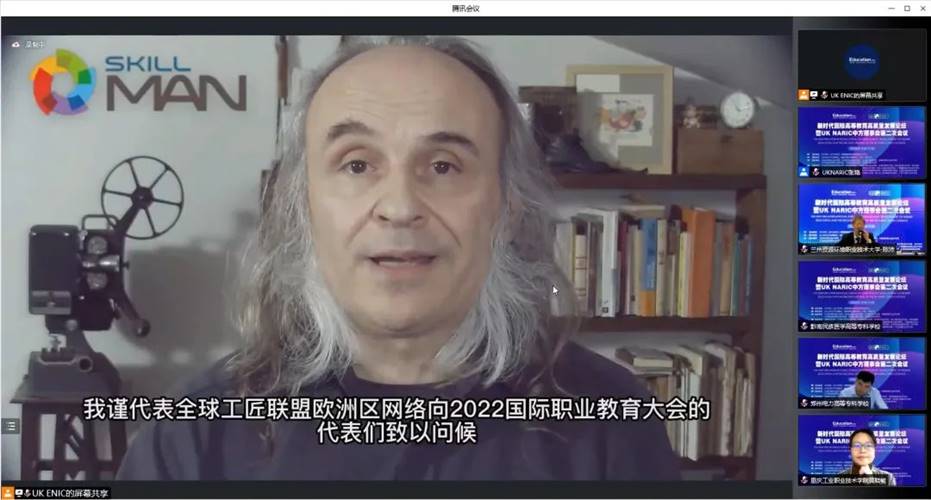 UK NARIC全球合作伙伴关系经理、国际教育系统和跨境资历认可领域专家亨利·胡吉特作《全球视野下中国“工匠精神”在西方的传播》。他向全球参会者介绍了全球工匠联盟的相关内容,并表示,“全球工匠联盟是一个全球化展示平台,让中国的职业院校可以一同参与国际事务,展示工作成果,对新时代下所需的卓越精神和高级技能达成新的全球共识。”