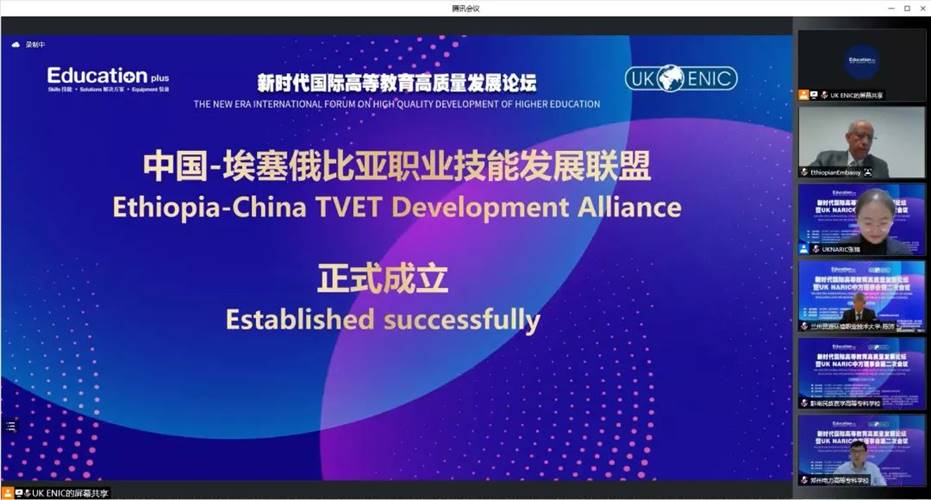 埃塞俄比亚驻华大使馆经济合作和基础设施部长所罗门·泰利拉与UK NARIC中方理事会共同宣布“中国-埃塞俄比亚职业技能发展联盟”成立,并公布第一批91所埃塞俄比亚院校联盟名单。