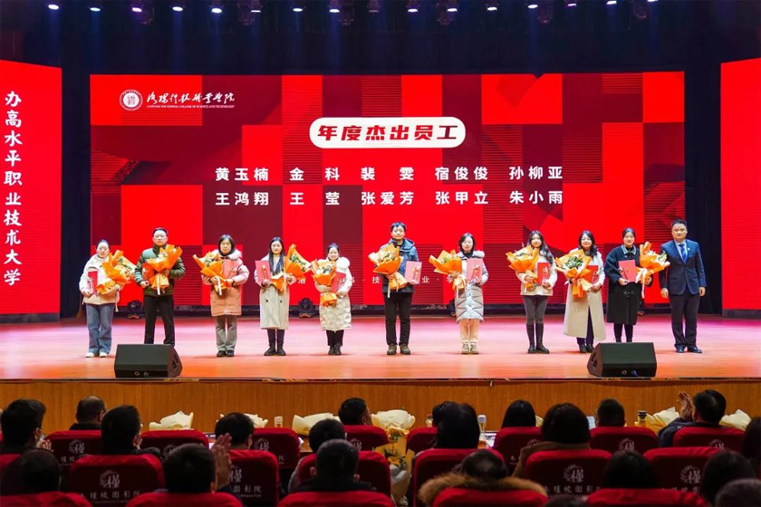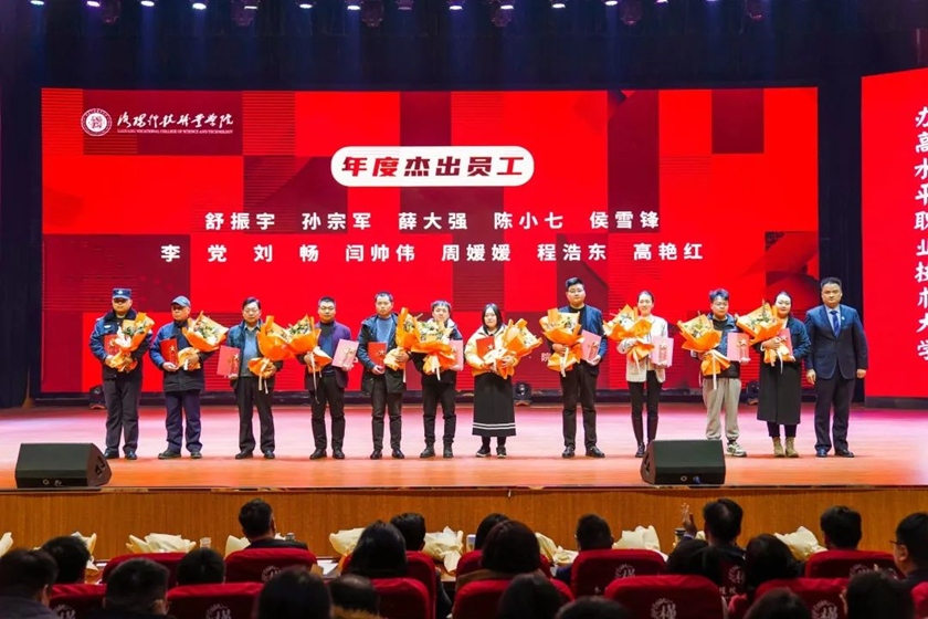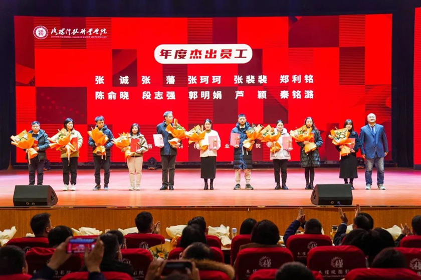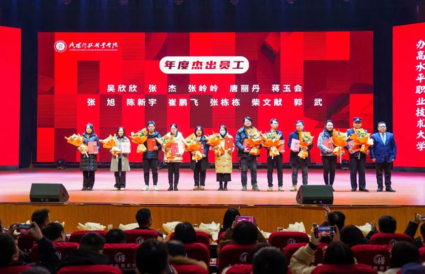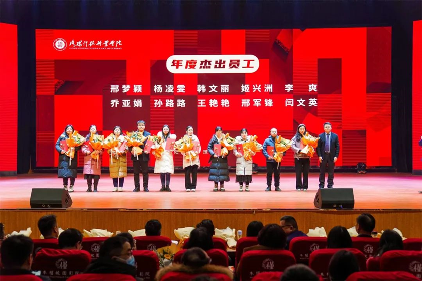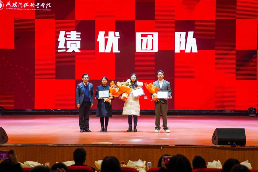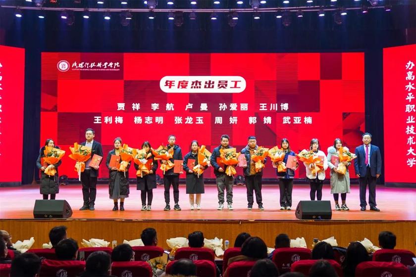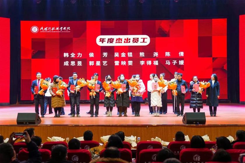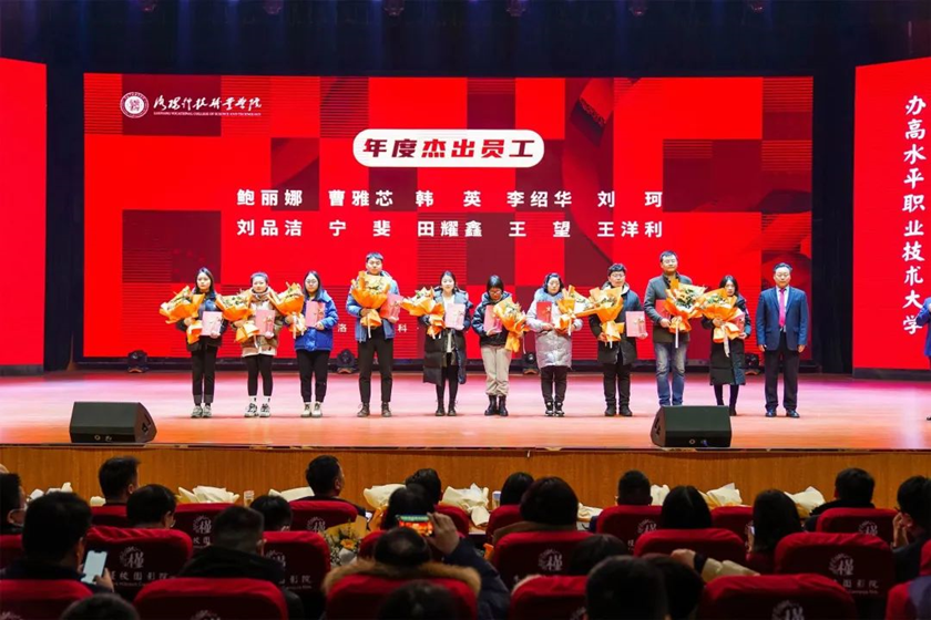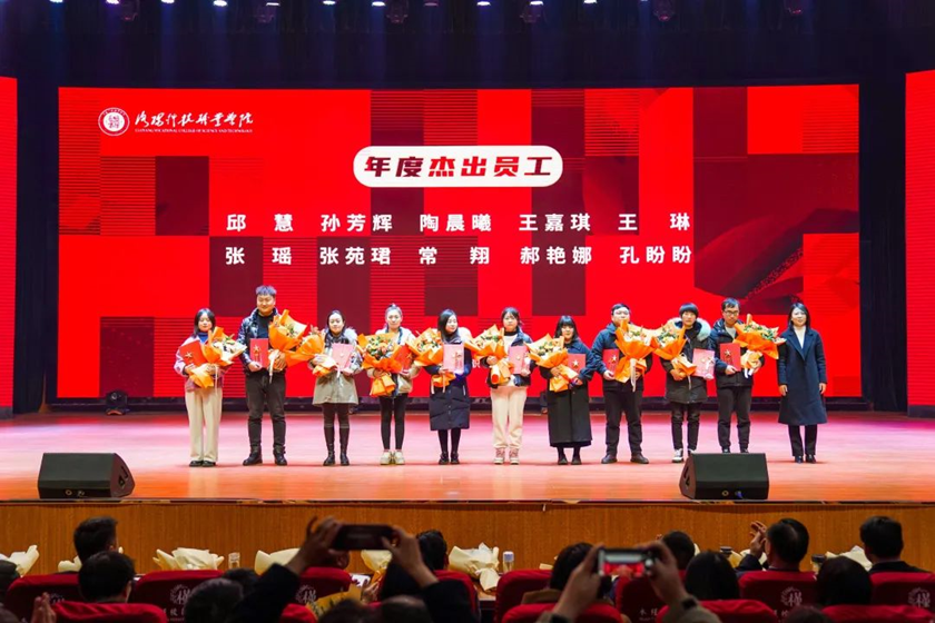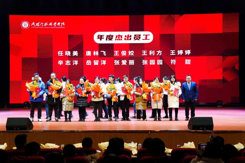 会上,校领导依次为“年度绩优团队”“年度杰出员工”“年度最佳新人”颁发荣誉证书及奖杯,并送上鲜花。