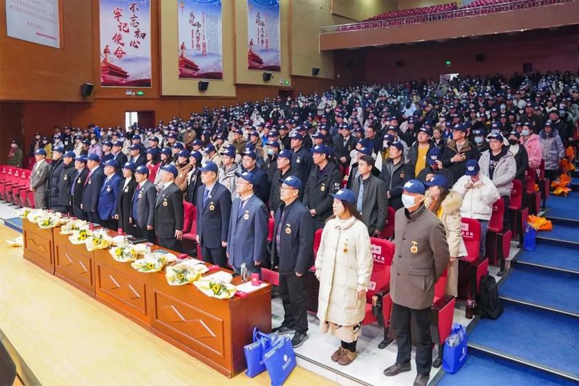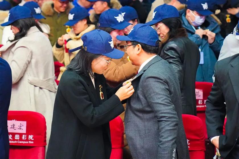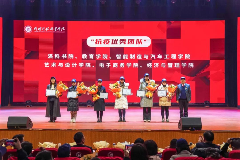过去的三年,是不平凡的三年,这1000多个日日夜夜,交织着我们的紧张与坚强、泪水与希望,在每个人的记忆中无法轻易抹去。一部宣传片,总结出洛科全体教职工在抗疫斗争中取得的成绩,三年来,是每一个洛科人的责任与担当,坚守与付出,创造了洛科20000余名师生在校期间“零感染”“零确诊”“零疑似”的抗疫“神话”。这场没有硝烟的战争里,我们每一个都是英雄,都值得一枚不朽的荣誉勋章!抗疫贡献者的荣誉,属于全体洛科人,教职工全体起立,一起戴上洛科专属定制棒球帽,举起抗疫勋章,相互把抗疫纪念勋章佩戴在胸前,是我们给予自己的崇高礼赞。