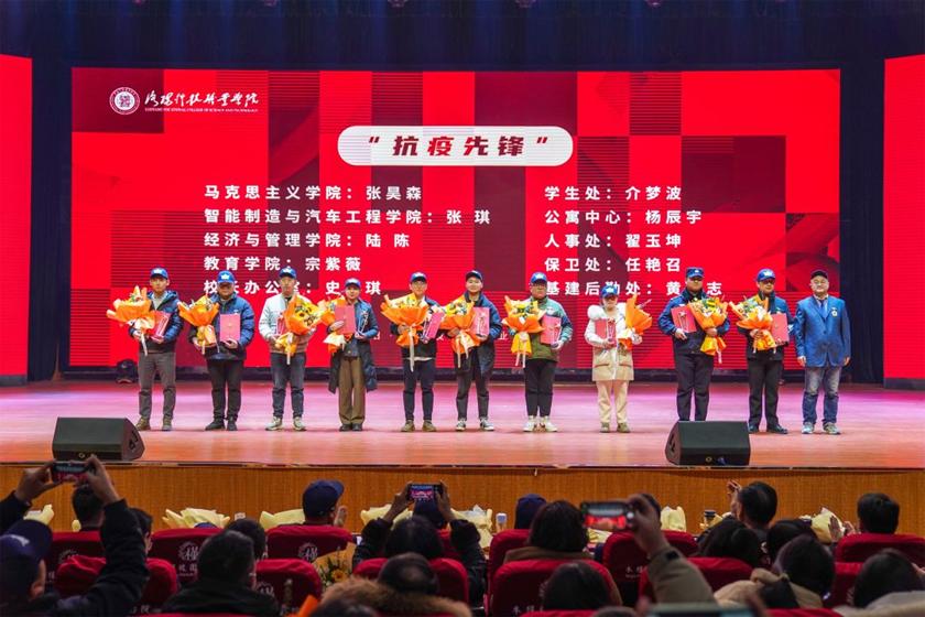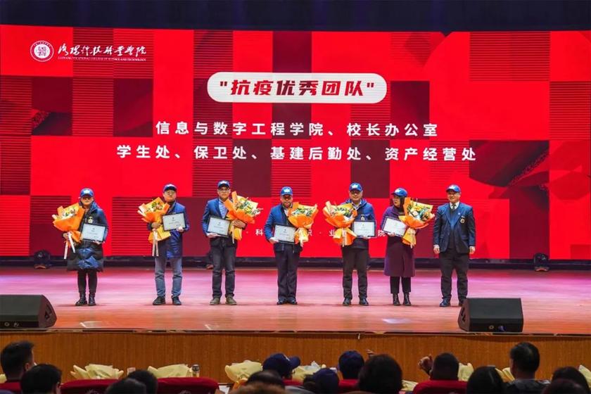 校领导依次为“抗疫优秀团队”“抗疫先锋”颁发荣誉证书及奖杯。