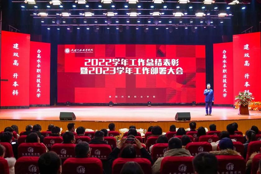 随后,刘丽彬为表彰大会作总结讲话。他表示,过去一年全体洛科人穿越新冠疫情的阴霾,办学水平不断提升、品牌建设不断突破,彰显了洛科人迎难而上的无畏精神和潜心育人的使命担当。2023年是疫情过后的第一年,是洛阳科技职业英皇娱乐场