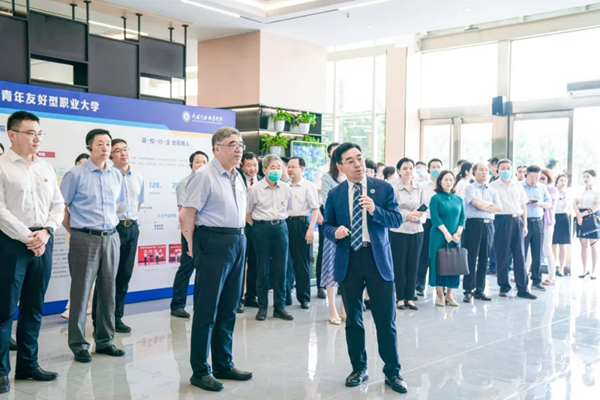至善大厦学生服务中心、融媒体中心、实训楼、鲁班书院、杏园餐厅等地进行调研,实地了解洛科校园文化、书院育人及产教融合特色项目。