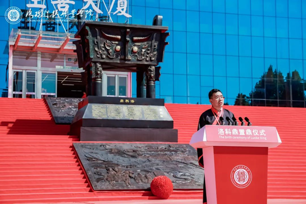 文化是一个国家、一个民族的灵魂。文化兴国运兴,文化强民族强。没有高度的文化自信,没有文化的繁荣兴盛,就没有中华民族伟大复兴。立足新时代,我们思索如何更好地把中华优秀传统文化中具有当代价值、世界意义的文化精髓提炼出来、展示出来。鼎作为华夏民族的文化瑰宝,是深厚的人文底蕴与精湛的工匠精神之集大成者,更是深度契合了洛科“人文+科技”的校园文化理念。在古代,鼎被视为立国重器;如今,教育是兴国之重器。我们以鼎喻教育之重,以鼎喻教师之尊。