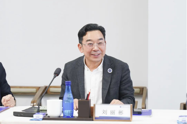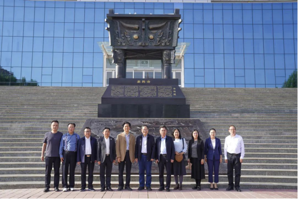 谭向勇、娄源功一行在至善大厦前合影留念后,参加了在至善大厦九楼举行的座谈会。